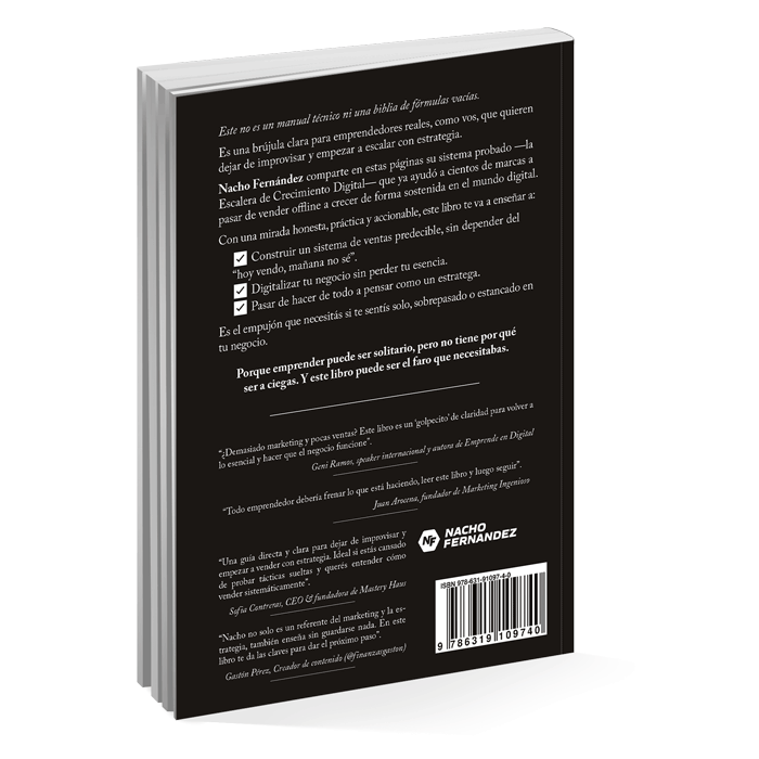 Nacho Fernandez comparte en estas páginas su sistema probado, la Escalera de Crecimiento Digital, que ya ayudó a cientos de marcas a pasar de vender offline a crecer de forma sostenida en el mundo digital.