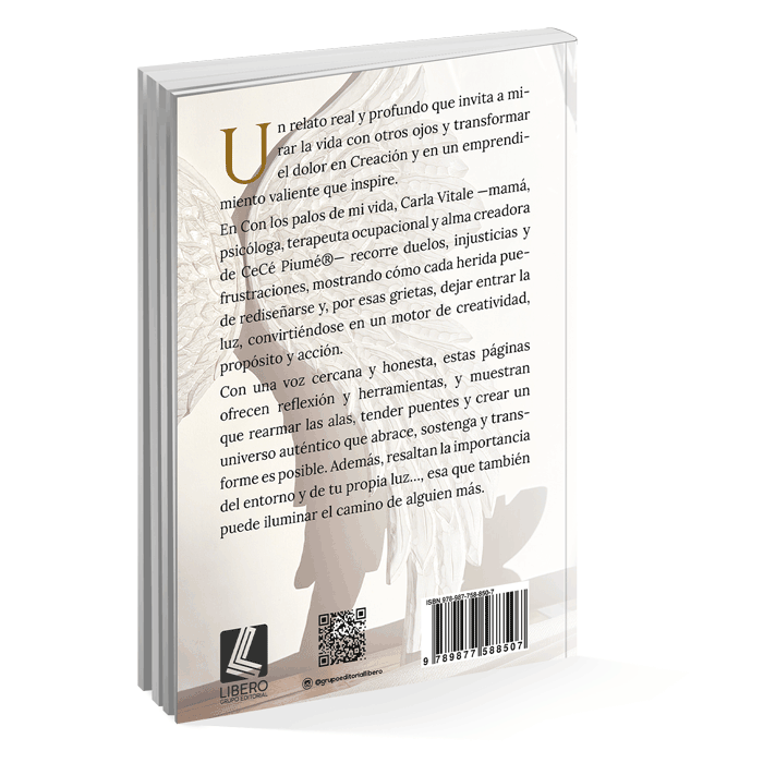 Un relato real y profundo que invita a mirar la vida con otros ojos y transformar el dolor en Creación y en un emprendimiento valiente que inspire.En Con los palos de mi vida, Carla Vitale —mamá, psicóloga, terapeuta ocupacional y alma creadora de CeCé Piumé®️— recorre duelos, injusticias y frustraciones, mostrando cómo cada herida puede rediseñarse y, por esas grietas, dejar entrar la luz, convirtiéndose en un motor de creatividad, propósito y acción.